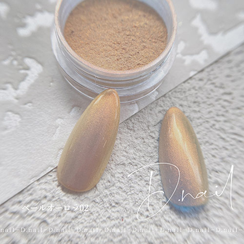ベースカラーの上から塗って、自由自在に偏光パール感のある落ち着いたオーロラカラーにするも良し、クリアに混ぜてシアー感のあるベールの様な軽やかなオーロラ感も出せるパウダーです。