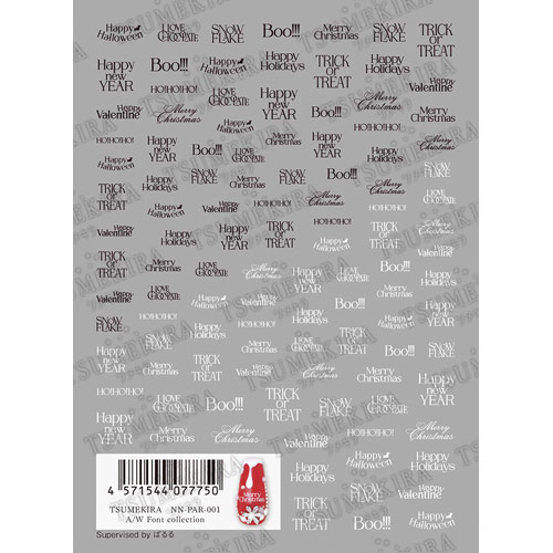 ハロウィン、クリスマス、お正月、バレンタインまで秋冬のイベントに使えるおしゃれなフォントコレクションです。ホワイトとダークブラウンの2色、サイズも2種類あるので、爪の大きさやデザインのイメージに合わせて使い分けできます。