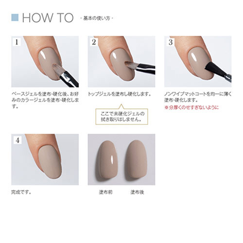 ※マットコートで仕上げる際は、トップジェル硬化後薄く均一に塗布してください。