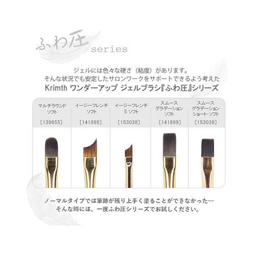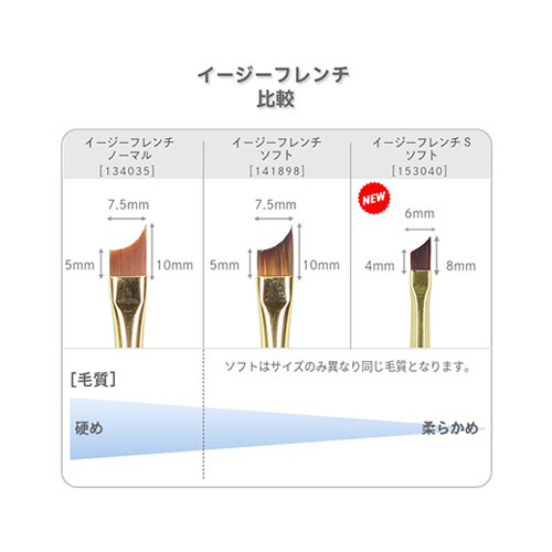 最も細く柔らかな毛質にすることにより、より優しいタッチでジェル表面を動かすことができます。