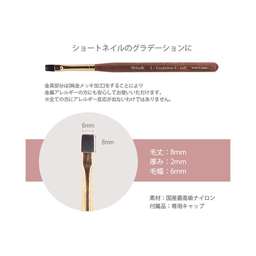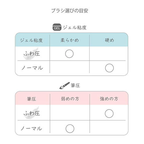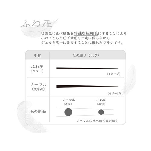 最も細く柔らかな毛質にすることにより、より優しいタッチでジェル表面を動かすことができます。