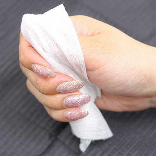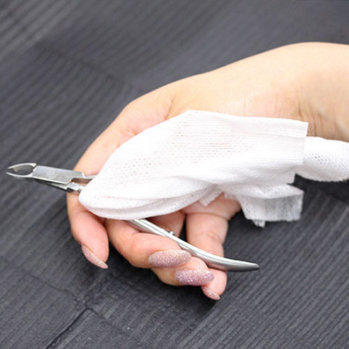 やさしい質感でルースキューティクルをきれいに除去できるネイルケア用ガーゼです。